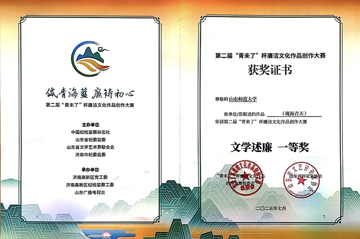 第二届“青未了”杯廉洁文化作品创作大赛评选结果揭晓。经济学院任围仓同学的作品《砚海青天》荣获大赛文学述廉类一等奖。此次获奖不仅是对参赛同学才华的肯定,更是经济学院廉洁文化建设成果的集中体现。