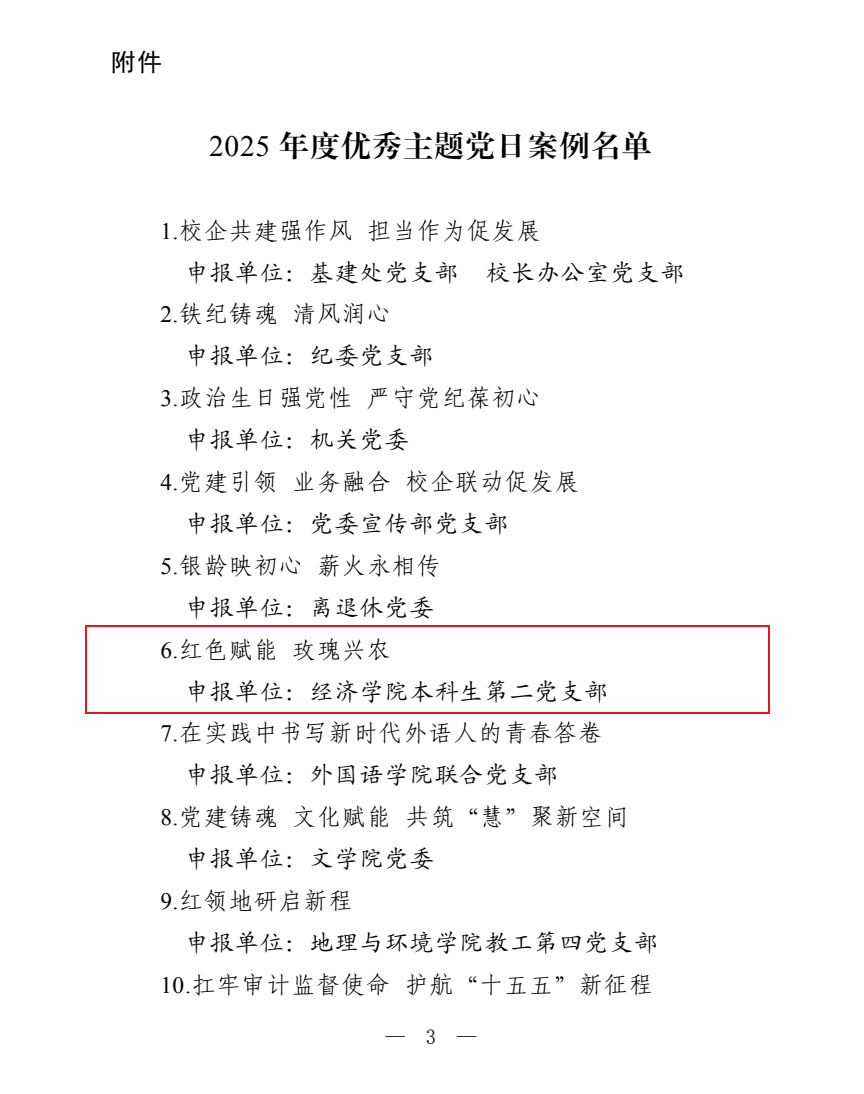 经济学院本科生第二党支部“红色赋能,玫瑰兴农”主题党日活动获评学校2025年度优秀案例