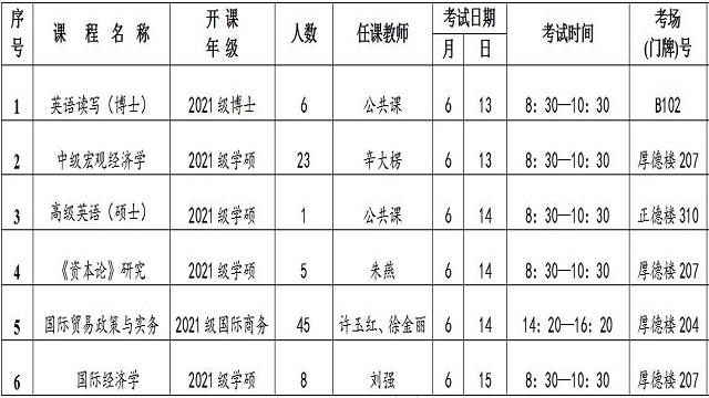经济学院2021-2022学年第二学期研究生课程考试计划表
