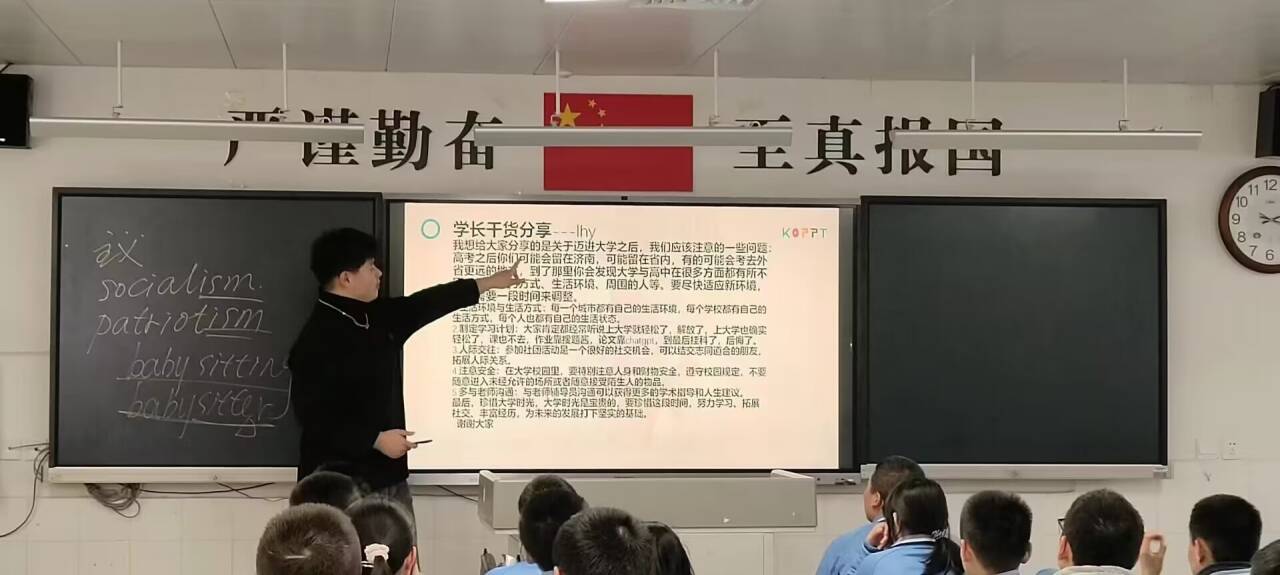 1月22日,我重返母校聊城市阳谷县第一中学,向高三的师弟师妹们宣讲山东师范大学,分享山师优美的校园环境和我们学校优良的学习作风,并分享我当时的一些学习和备考经验。重回母校,看着风华正茂的师弟师妹们,让我感慨万千,他们正为了自己的理想目标而不懈奋斗。重回高中的我,带着在大学中获得的知识、经验和感悟,与学弟学妹们分享一些关于大学生活的见解。我希望我的分享能够帮助学弟学妹们对大学生活有更深的理解,更好地规划自己的未来。离别时,我默默地许下愿望,希望母校的明天更加辉煌,希望所有的师弟师妹都能在母校这片沃土上茁壮成长。