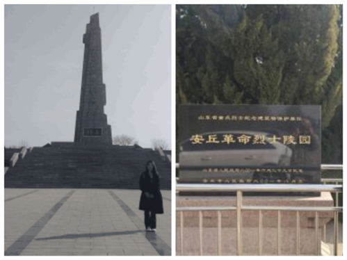 金融本2201班的曹慧敏同学来到安丘市革命烈士陵园,探寻革命底色,缅怀先烈精神。她走上烈士陵园门口一段长长的台阶抬头望,是烈士陵园高大宏伟的牌坊,其柱雕花纹,正中用金字写成“烈士陵园”四个大字,苍劲有力。再向前,矗立着的革命烈士纪念碑赫然眼前,仰望它的时候,让人心中自然而然生起一丝敬畏。她踏入陵园之中,整齐的墓碑延伸至远方,他们虽长眠于此,但他们的精神却永远活在人们心中。随后,曹慧敏来到了陵园内的革命烈士纪念堂与革命烈士事迹陈列馆,生动的面庞、坚毅的眼神以及许许多多令人赞叹的革命事迹,都让她不禁联想那个峥嵘岁月发生的动人心魄的故事,那是何种的坚韧,何种的无私。
