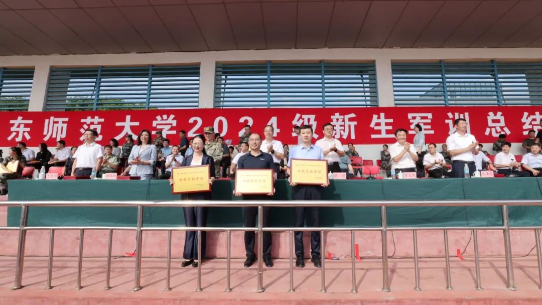 9月19日上午,山东师范大学2024级新生军训总结大会在长清湖校区风雨田径场隆重举行,经济学院荣获山东师范大学2024年新生军训工作“特殊贡献单位”称号。