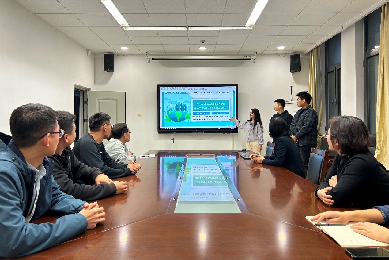 活动伊始,《基于CCUS-EOR的陆相页岩油绿色开采经济与环境效益优化模型》和《中国式现代化进程中⻘年助力乡村全面振兴的路径研究》两个项目先后做了汇报展示和模拟答辩。随后,与会专家分别就项目叙事逻辑、学术规范、技术路径、路演效果等方面与项目团队成员进行了交流和指导。最后,与会人员梳理了备赛期间的注意事项和时间节点,确定了项目修改计划,为项目修改提升提供了重要支持。
