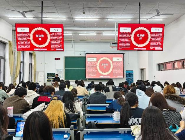 本次主题团课以董明珠与王传喜的案例为切入点,围绕“榜样之光”“悟道析理”“知行合一”“薪火相传”四部分展开。首先,主讲人分享了董明珠坚守创新驱动、深耕实业的奋斗历程,从创新、务实、担当三维度解读她捕捉机遇、突破格局的关键举措。随后,主讲人讲述了王传喜带领负债村脱贫致富的事迹,深度剖析了代村目标分解工作法的内在逻辑。最后,主讲人呼吁大家以案例研究和实地调研为抓手,汲取榜样智慧经验,转化为学习动力,紧扣国家战略选准发展赛道,青年扎根实践、锤炼本领,争做新一代经济榜样接续创造者。